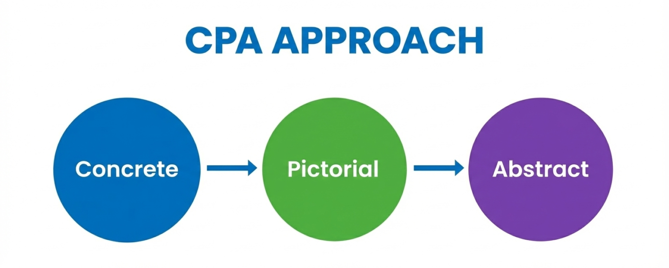 To prevent this, students need opportunities to explore concepts in multiple ways through hands-on tools, visuals, discussion, and real-life contexts. This is why the Concrete–Pictorial–Abstract (CPA) approach is central to my teaching.